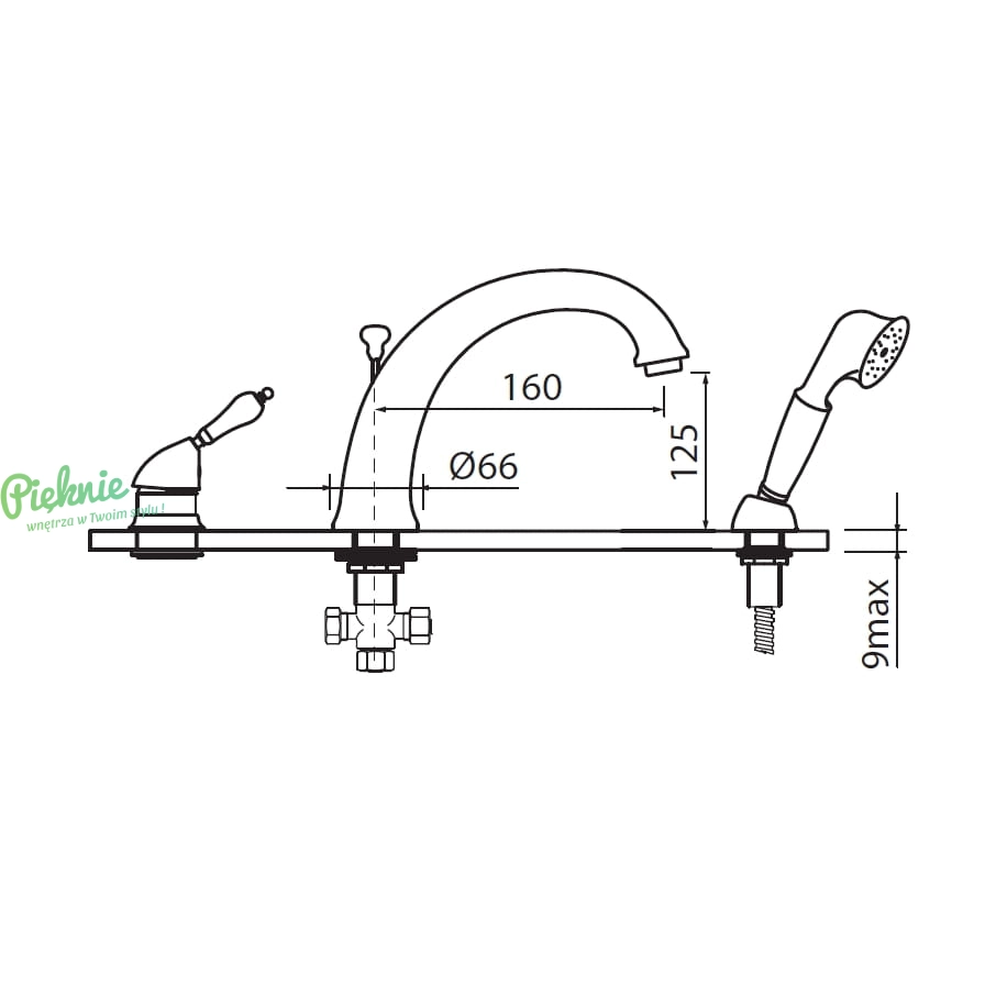 Vedo Vara Bronzo bateria wannowa 3-otworowa w stylu retro