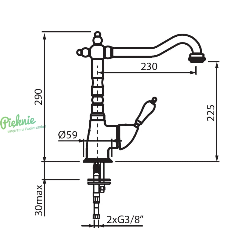 Vedo Vara Bronzo bateria zlewozmywakowa w stylu retro