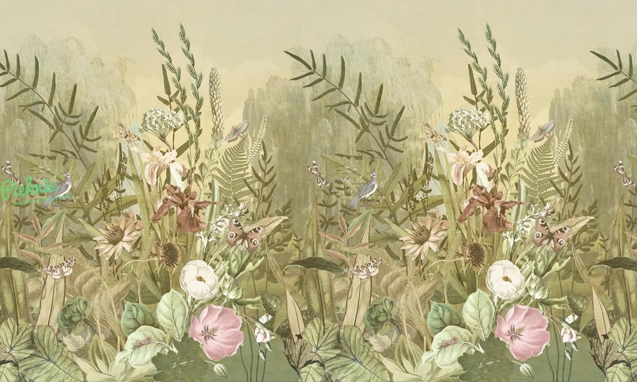 Wall Art Bloom kwietna łąka z motylami fototapeta roślinna - wymiar indywidualny