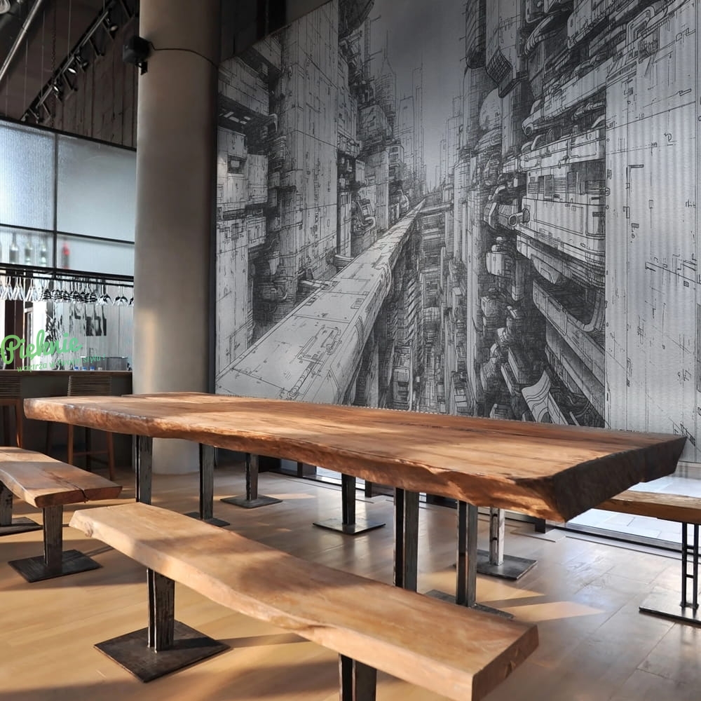 Wall Art Cyber City komiksowa fototapeta science fiction futurystyczne miasto