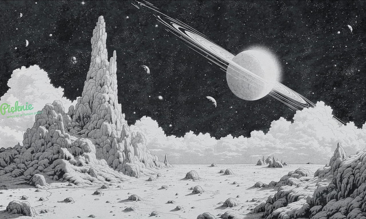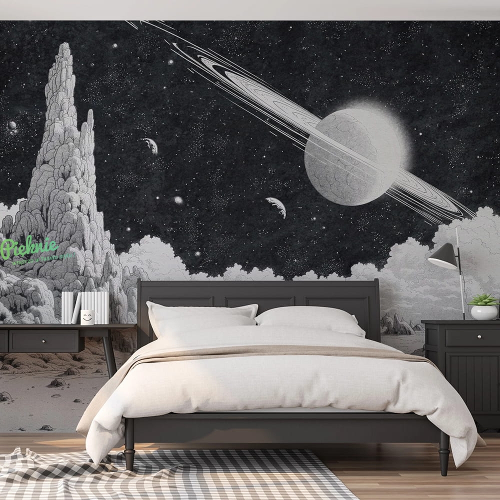 Fototapeta na wymiar indywidualny z komiksowym motywem skalistej planety i kosmosu. Idealna do pokoju nastolatka lub do biura. Podaj nam wymiary, a my przygotujemy indywidualną wycenę i kadrowanie: info@pieknie.pl