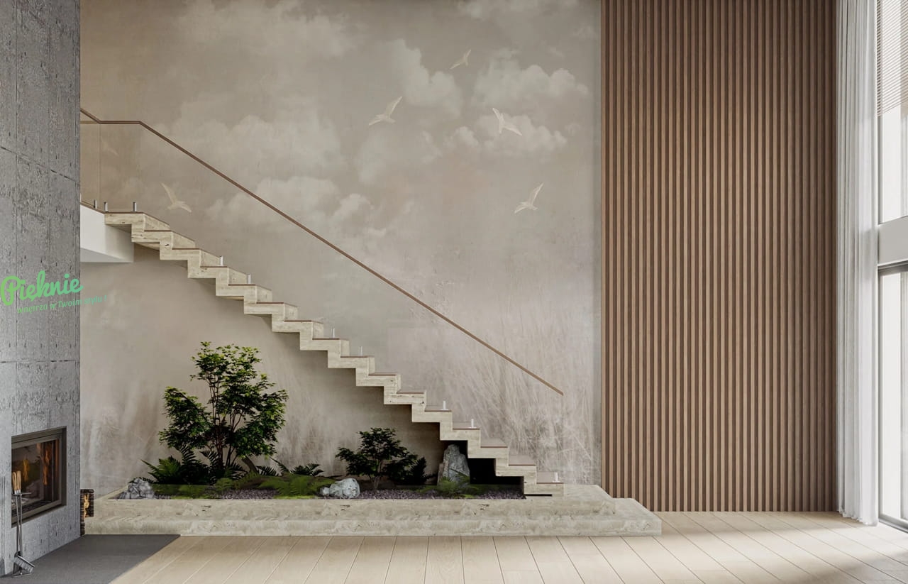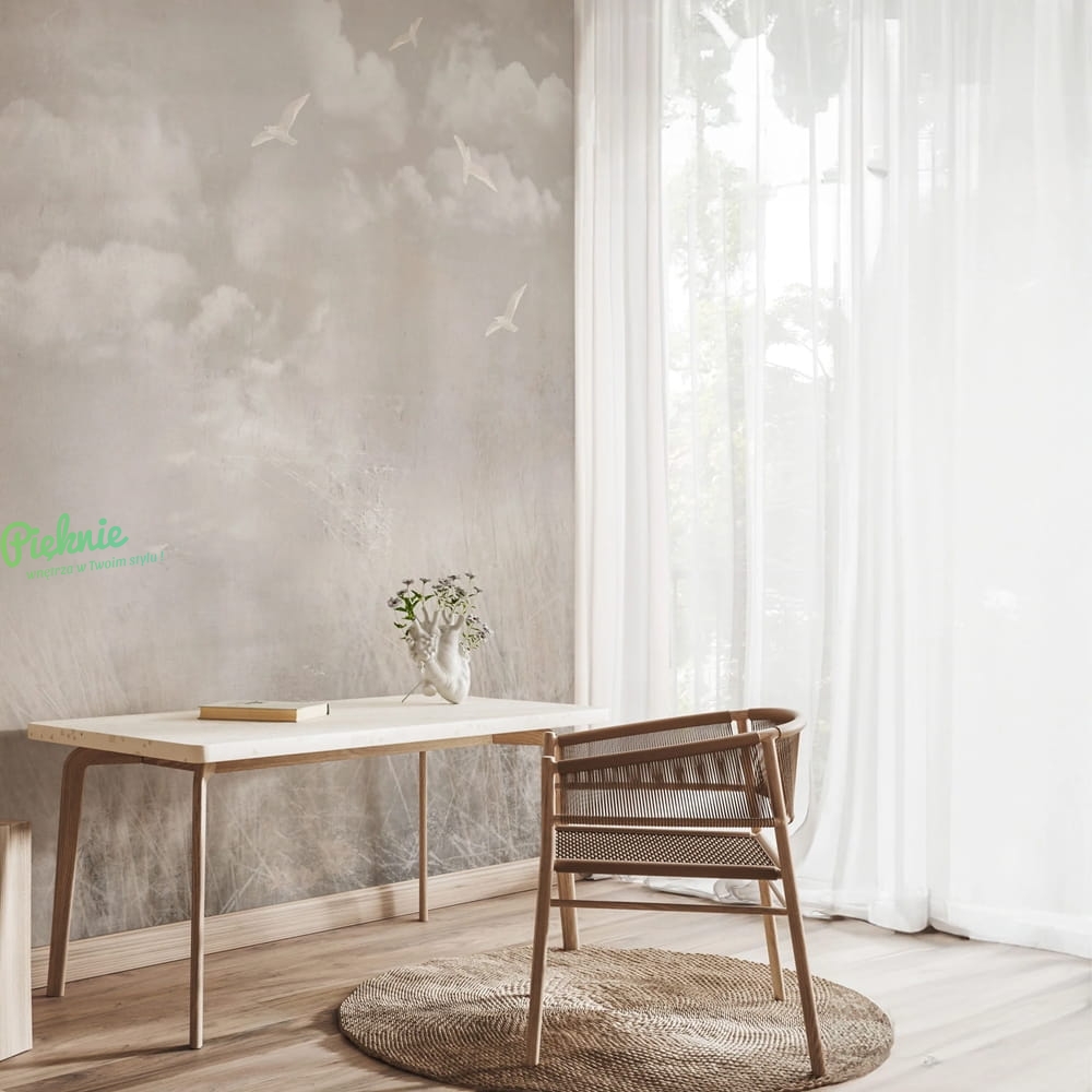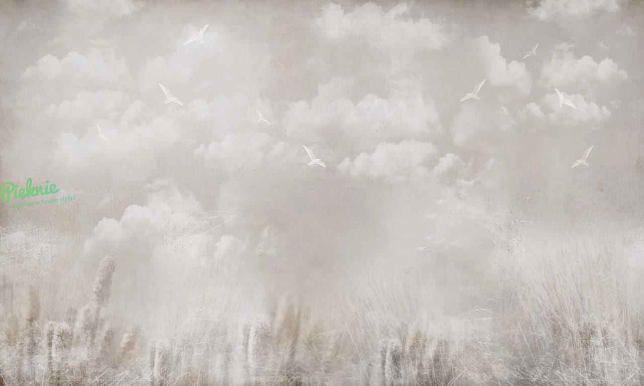 Sielska fototapeta na wymiar indywidualny z motywem nieba, ptaków i łąki. Podaj nam wymiary, a my przygotujemy indywidualną wycenę i kadrowanie: info@pieknie.pl