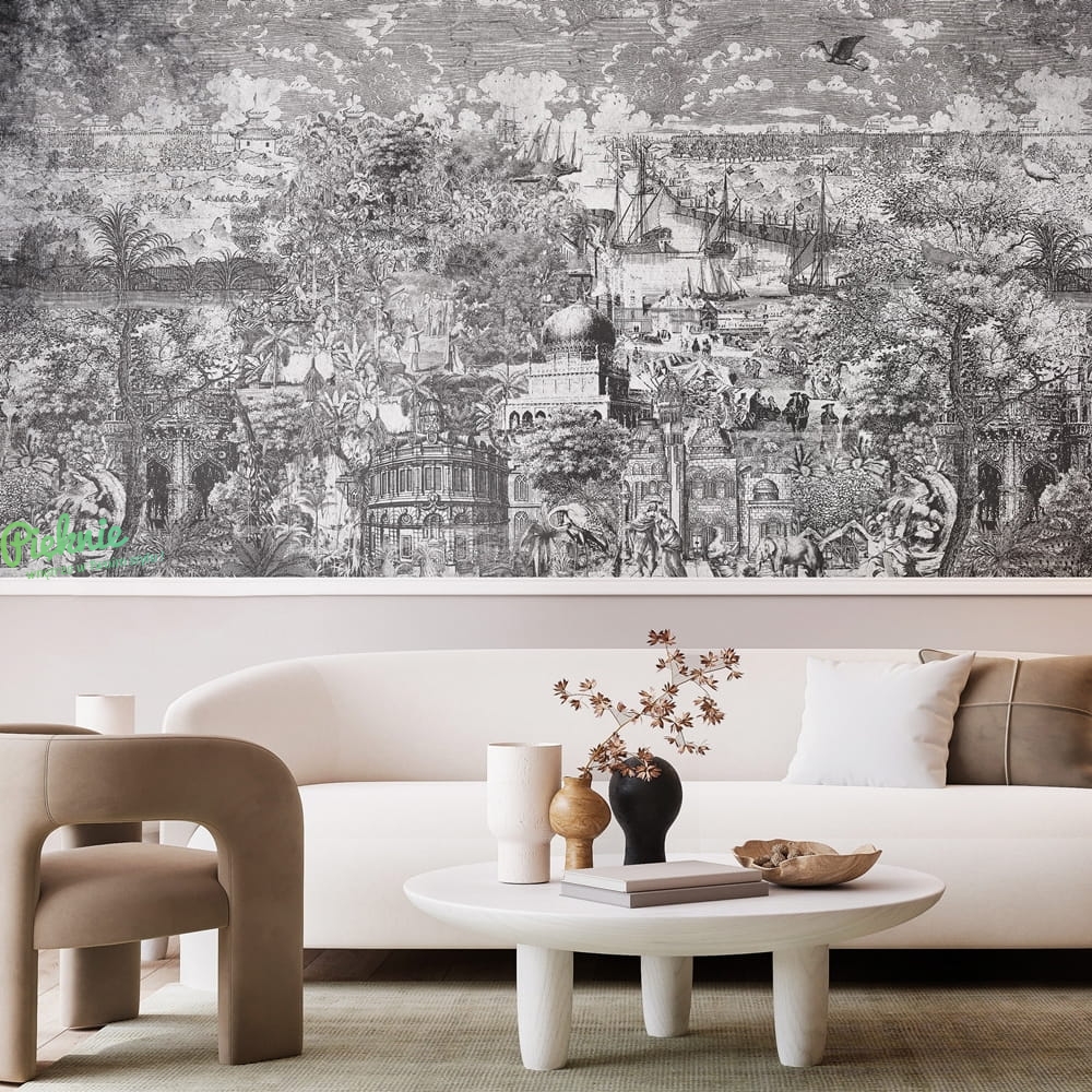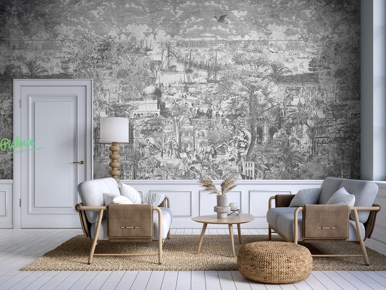 Gulliver jest wzorem mogącym przyprawić o zawrót głowy. Drobiazgowa rycina nadmorskiego miasta kryje w sobie niezliczone detale, które każdego dnia możemy odkrywać go na nowo. Szczegóły architektoniczne, botaniczne, postaci ludzi i zwierząt, to wszystko znajdziemy na tym niezwykle złożonym dziele. Kolorystyka utrzymana w skali szarości, pomimo że, przywodzi na myśl stare ryciny, znakomicie wkomponuje się w nowoczesne, ascetyczne wnętrze, stając się centralnym punktem pomieszczenia. Podaj nam wymiary, a my przygotujemy indywidualną wycenę i kadrowanie: info@pieknie.pl