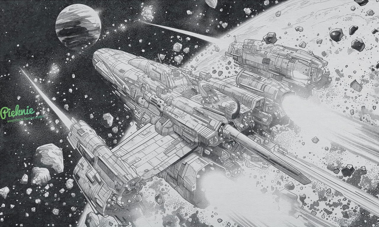 Wall Art Kanata komiksowa fototapeta na wymiar science fiction statek kosmiczny