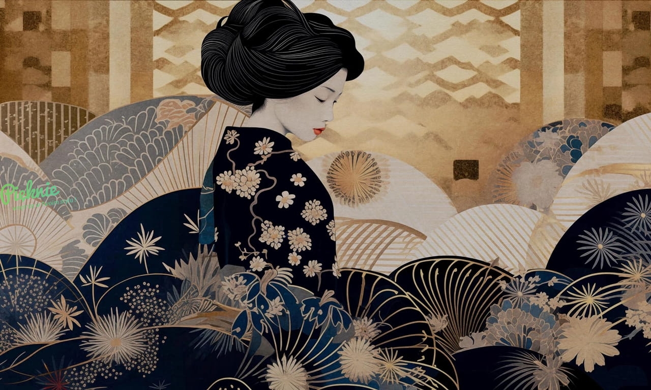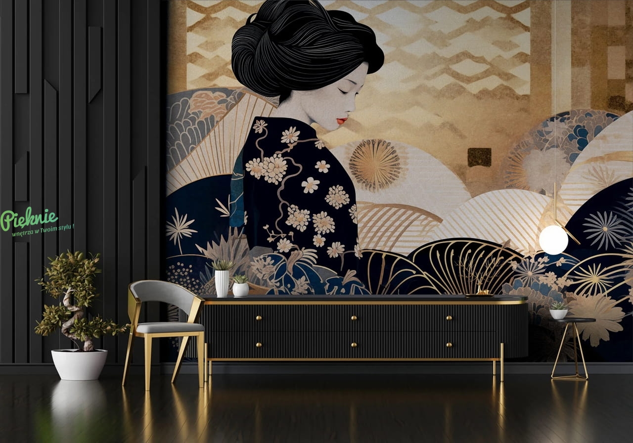 Wall Art Kinui orientalna fototapeta na wymiar Gejsza wachlarze