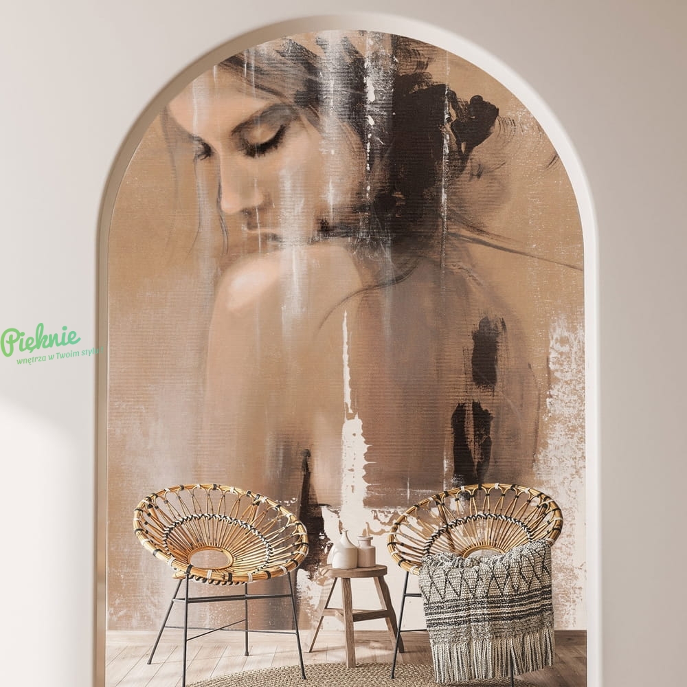 Lotta to kojący zmysły wizerunek kobiety, która emanuje delikatnością i spokojem. Właśnie spokój jest jedną z wiodących emocji, które inspirują autorkę obrazu. Neutralne kolory, pozycja, w której została uchwycona dają poczucie relaksu i ukojenia. Paleta barw charakterystyczna dla artystki znakomicie zgrywa się z ponadczasowymi trendami wnętrzarskimi bazującymi na ciepłych beżach, przytulnych, naturalnych dodatkach i drewnie.