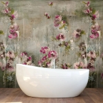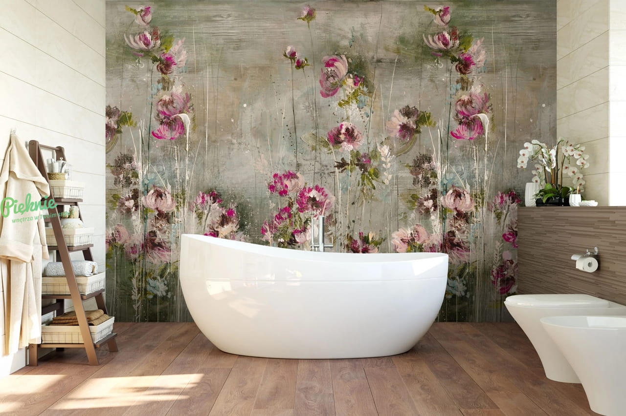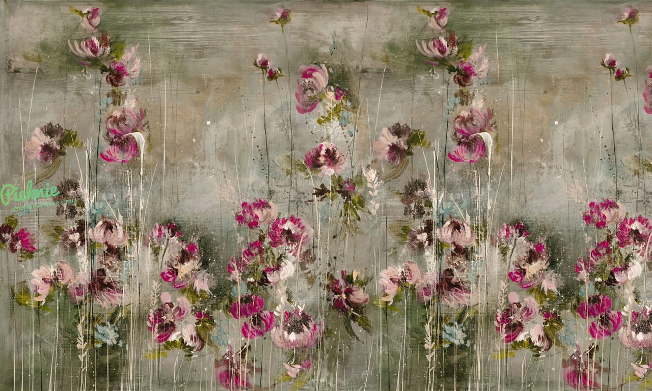 Malva zachwyca połączeniem pudrowych róży, fuksji z tonującą je szałwią i szarościami. Wyjątkowy sposób namalowania wzoru sprawia, że można go umieścić na ścianie w dwojaki sposób. W zależności od wnętrza, równie spektakularnie wyglądać będą łodygi “wyrastające” z naszej podłogi jak i z sufitu.