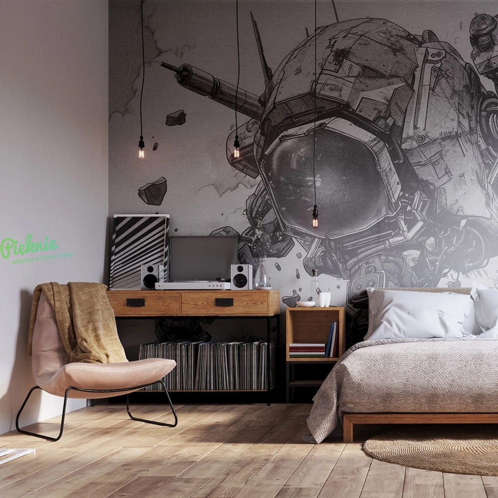 Fototapeta na wymiar indywidualny z komiksowym motywem mechy (robota). Idealna do pokoju nastolatka lub do biura. Podaj nam wymiary, a my przygotujemy indywidualną wycenę i kadrowanie: info@pieknie.pl