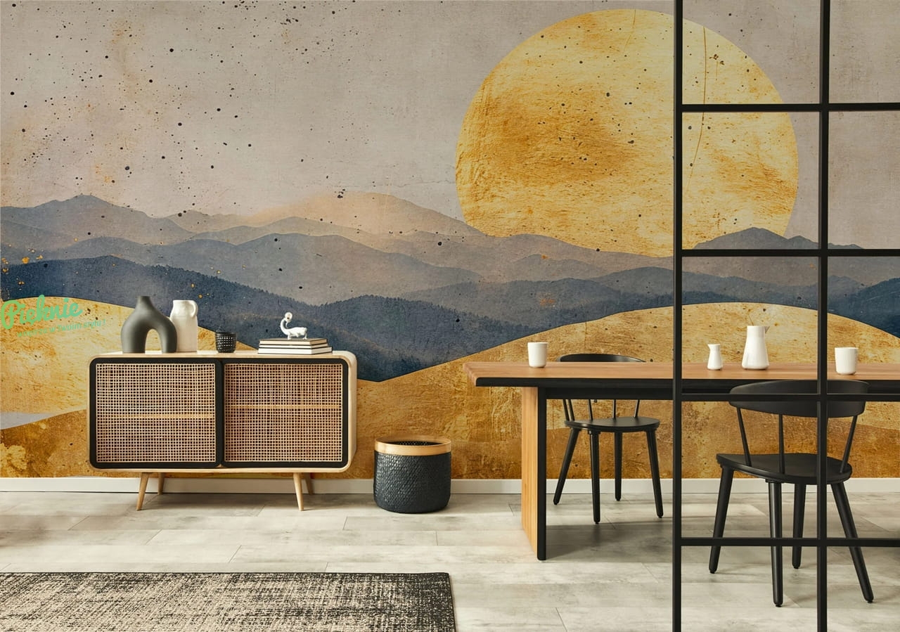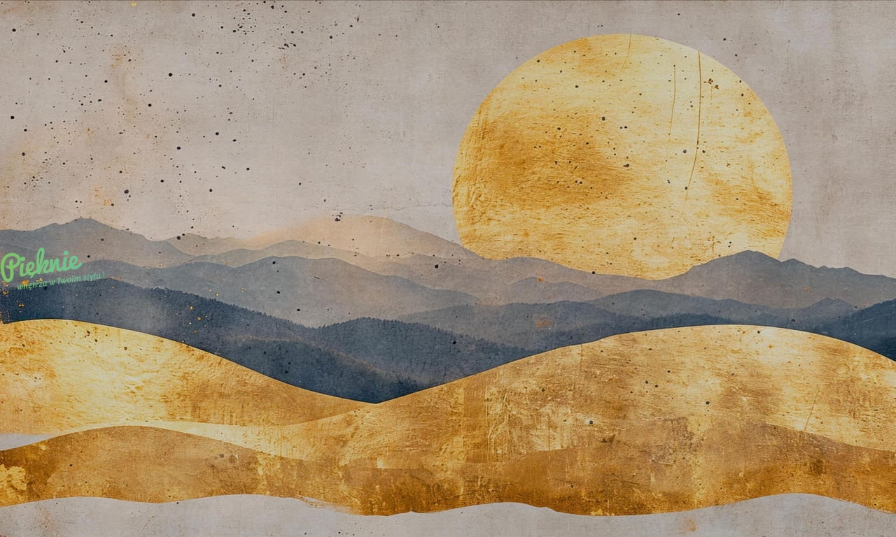 Wall Art Oka nowoczesna fototapeta na wymiar zachód słońca nad górami