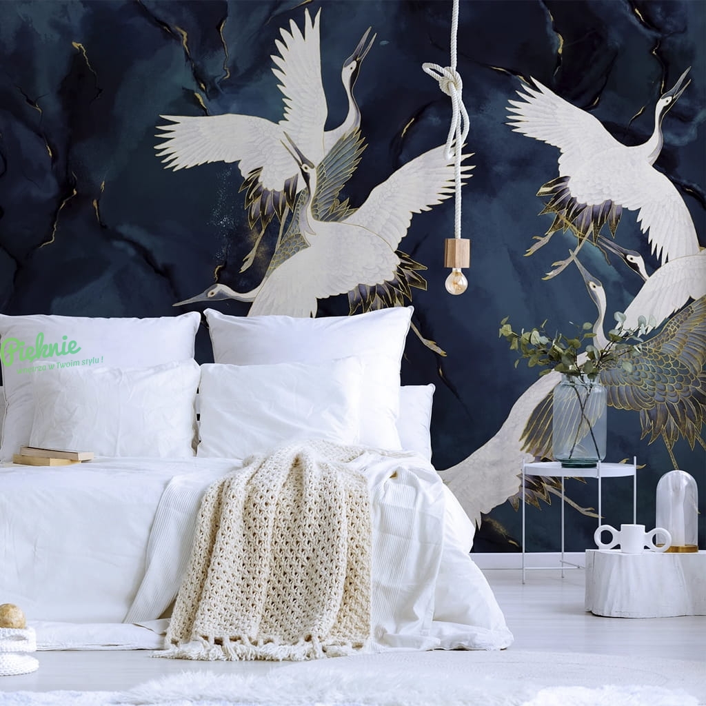 Wall Art Royal Tsuru żurawie na tle burzowego nieba fototapeta na wymiar indywidualny