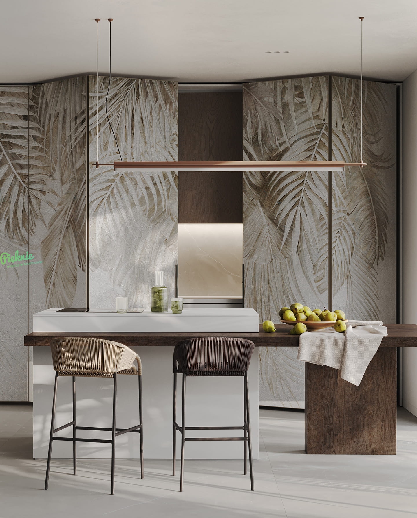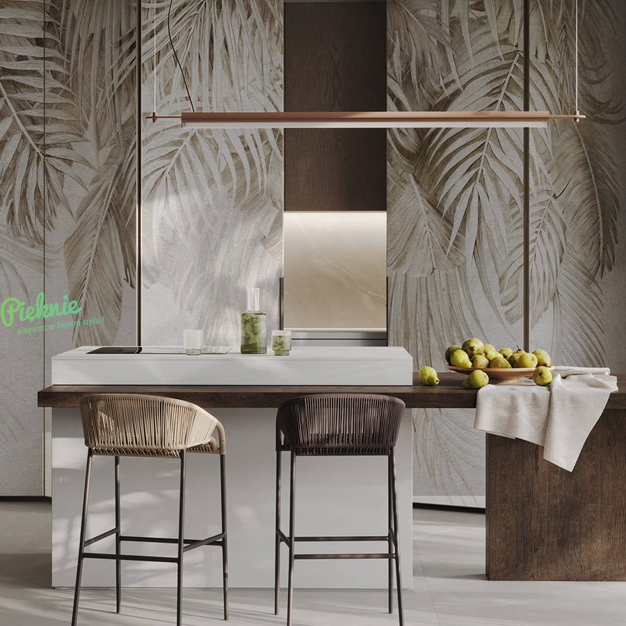 Wonderwall Areca fototapeta duże tropikalne liście beżowe