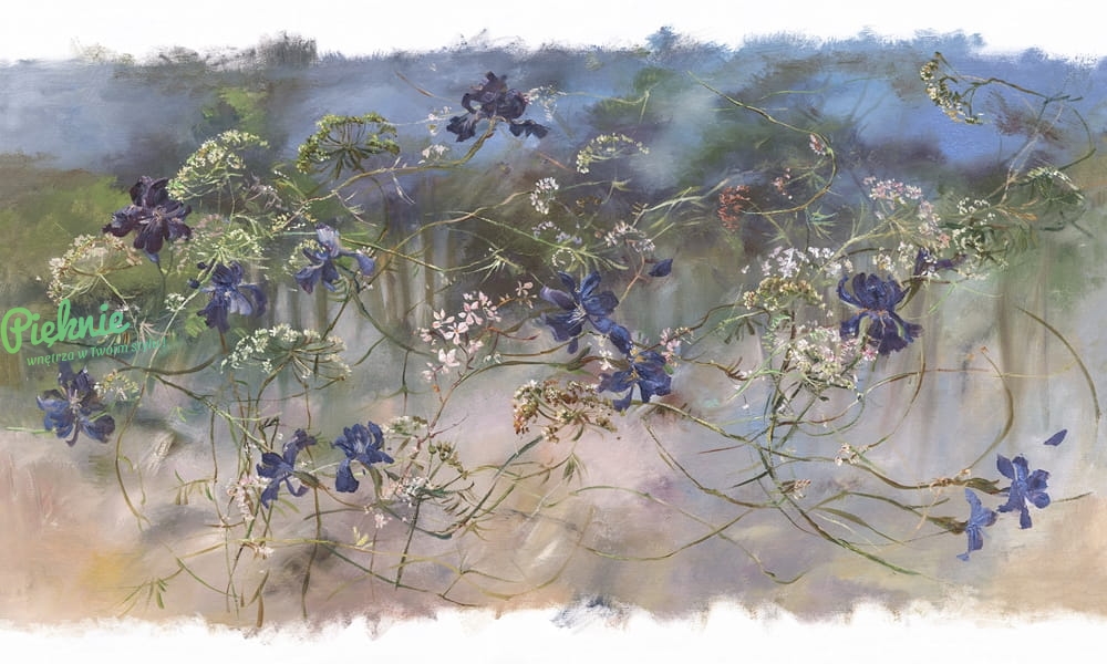 Fototapeta Blumarine z delikatnym motywem roślin łąkowych.