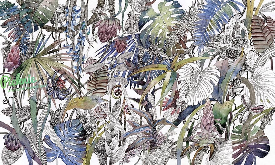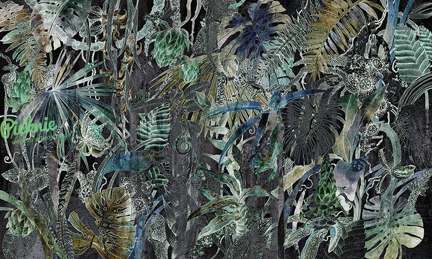 Wonderwall Fusion kolorowa botaniczna fototapeta - egzotyczne rośliny