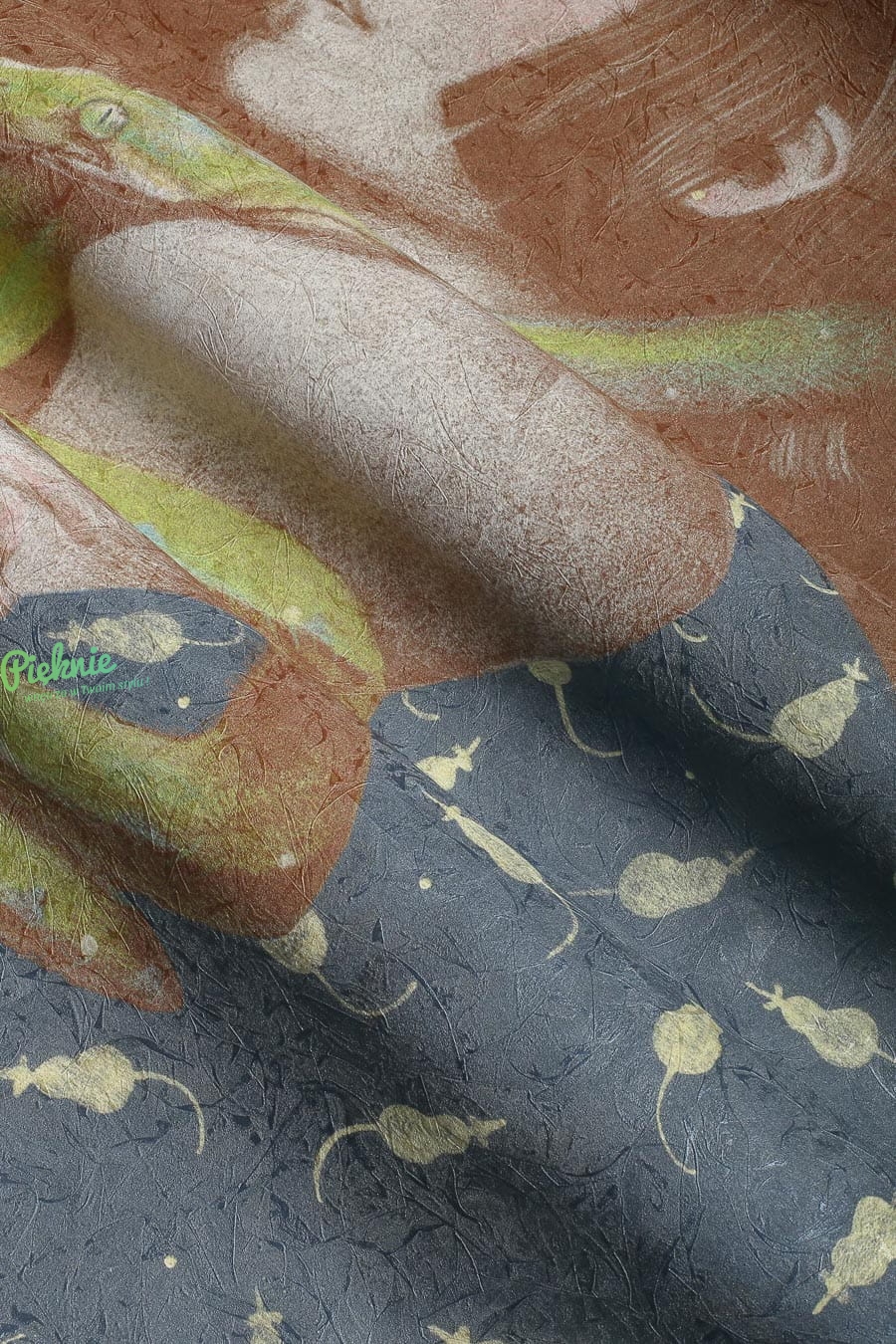 Fototapeta z sylwetką kobiety odzianą w tkaninę z wzorem myszy.