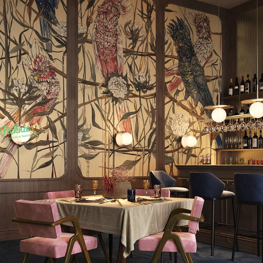 Fototapeta Wonderwall Makani w papugi i kwiaty.