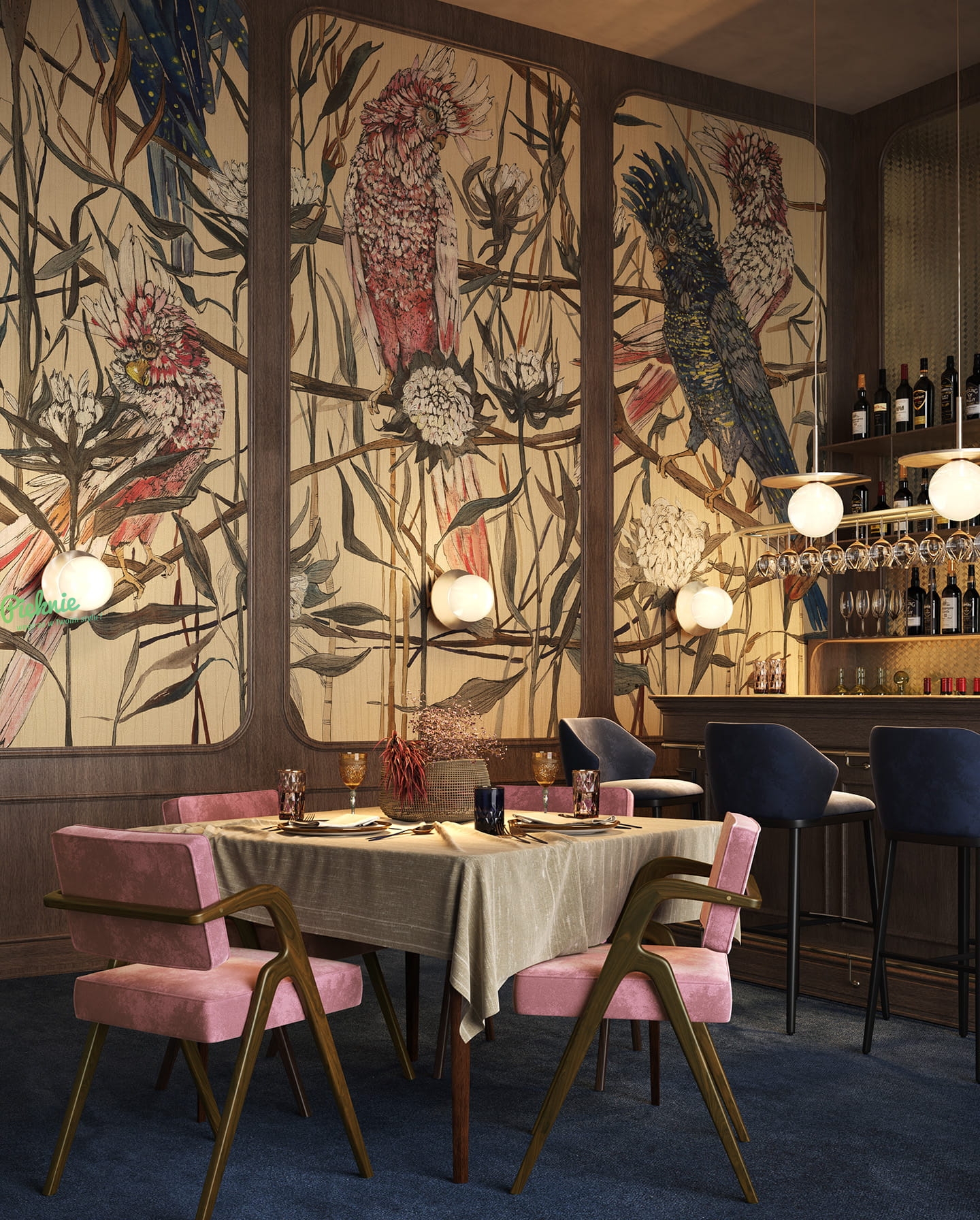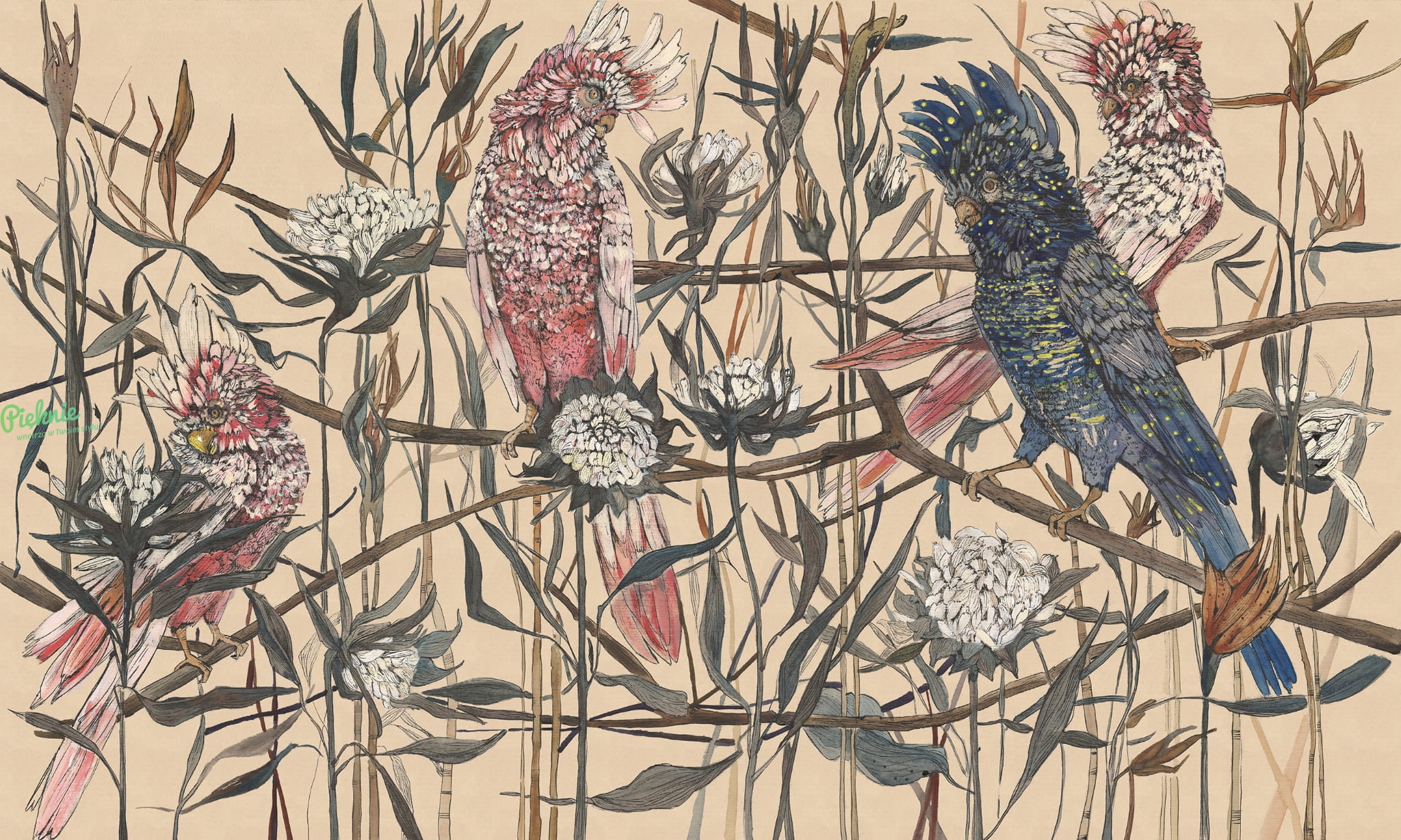 Wonderwall Makani fototapeta z motywem papug kakadu i roślin
