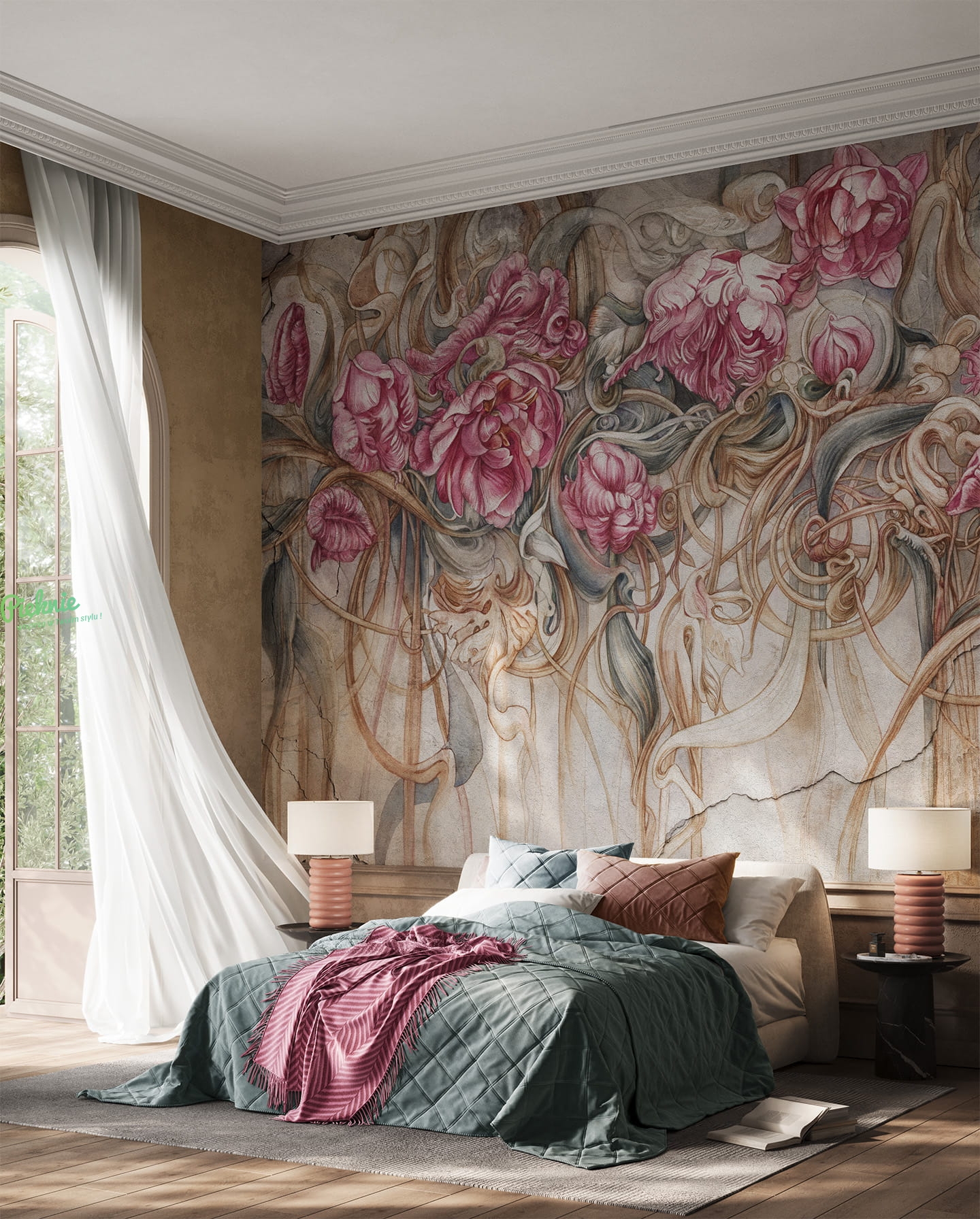 Wonderwall Rocalle fototapeta romantyczne kwiaty peoni - 2 kolory
