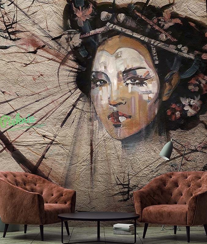 Yoko Wonderwall Studio orientalna tapeta fizelinowa z wizerunkiem Gejszy