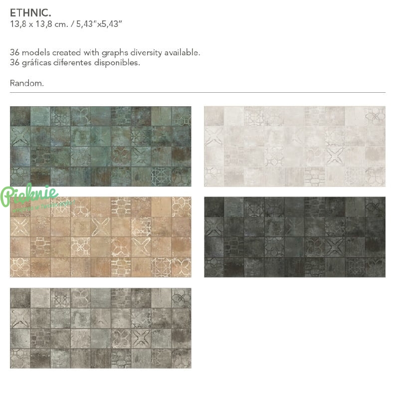 Uniwersalne kafelki z etnicznym motywem. Kolekcja składa się z 36 różnych wzorów (pakowanych losowo).