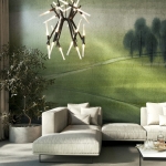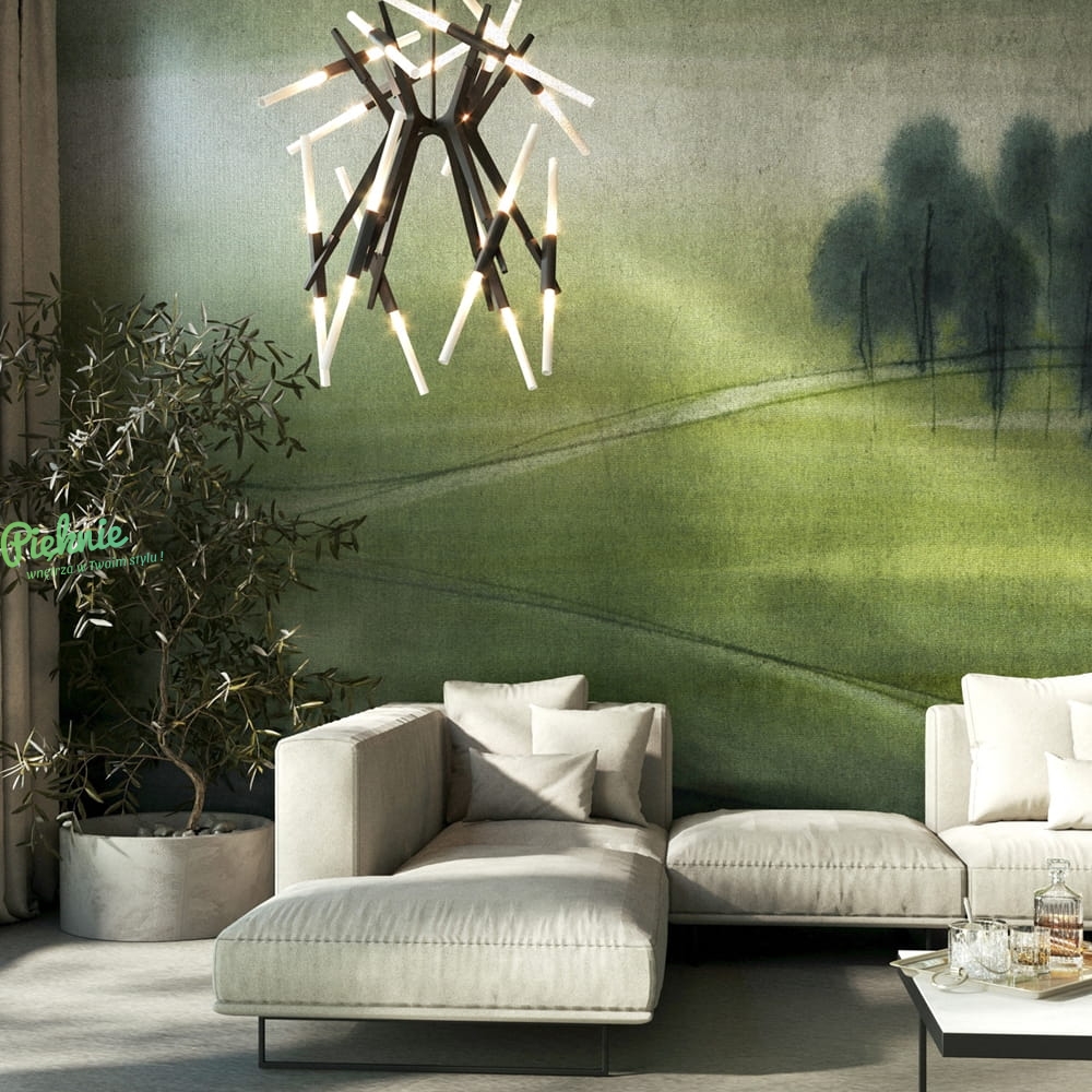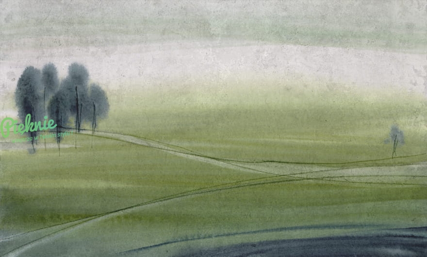 Fototapeta przedstawiająca spokojny, zielony pejzaż.